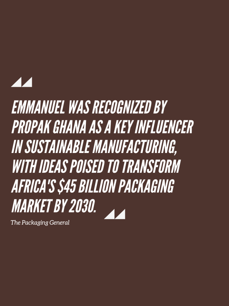 As General Manager of FON Packaging Ventures – a pioneering Ghanaian-owned corrugated carton manufacturer, Emmanuel Osei Ntim is revolutionizing the continent’s packaging landscape. With over 10+ years of hands-on expertise in sustainable production and African industrialization, he demystifies the industry for SMEs, entrepreneurs, and aspiring professionals, addressing critical gaps in knowledge on trends, compliance, and eco-innovations. His insights have been featured on The Peswa Podcast and in Graphic Online, reaching thousands and sparking conversations on packaging’s role in economic growth.